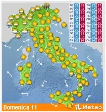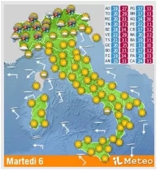 不同于北部地区的狂风暴雨,意大利中南部地区是另一番景象。受非洲热浪影响,意大利中南部地区及西西里岛、萨丁岛的温度将从6日起不断升高。特别是撒丁岛,温度将超过40℃。西西里岛及普利亚地区的温度最高可达38℃。波河平原部分地区及托斯卡纳内陆地区的最高温度也将高达37℃。