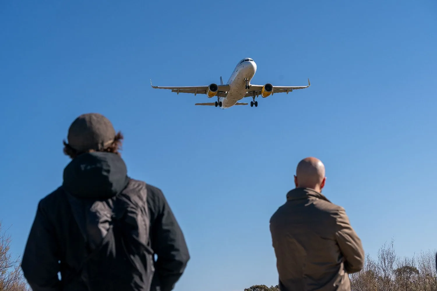 2月12日,人们在西班牙巴塞罗那机场观看飞机降落。