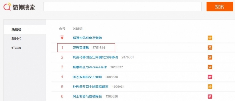 新浪微博热搜榜截图