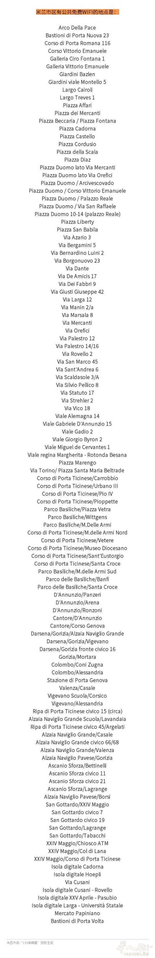 在米兰华人集中的Paolo Sarpi 街区,也有一处免费的Wifi热点基站——VIA GIUSEPPE GIUSTI 42号。