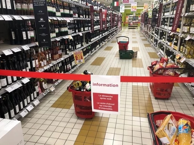 图为被顾客丢弃的篮子以及禁止购物的酒水区。(图片来源:《20分钟报》记者julie Urbach推特)