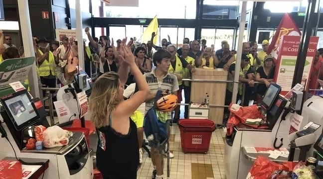 25日下午1时,卡西诺前面就聚集了数百名示威者,里面有工会成员,有超市工作人员,有附近的普通民众还有不嫌事大的“黄衫军”。虽然号称是和平集会,但他们高喊“这是社会的倒退”“下一个失业的就是你”的口号,并且拉住来购物的客人,苦口婆心的劝告他们不要在此购物,或者改日再来。