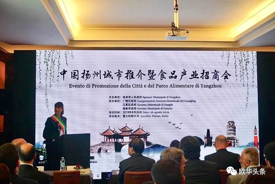 意大利《华人街》讯(记者一策):2019年8月26日上午10时许,应意大利帕尔马市政府邀请,扬州市委书记、市人大常委会主任谢正义、扬州市广陵区委书记潘学元、扬州市外事办公室主任朱勇、扬州市广陵区政府常务副区长王峰、高邮市政府副市长扬州大学教授张军、广陵区经济开发区主任戴维宝、扬州市食品产业园书记兼主任刘明辉等一行15人来到意大利文化历史名城"鱼米之乡"帕尔马市,为中国扬州城市推介暨食品产业招商会拉开序幕,并进行正式友好访问,双方在愉快的气氛下深入洽谈两地合作意向。此次会晤在意大利亚得里亚华商会会长周中星携多名会长团成员的全程陪同下有序进行。