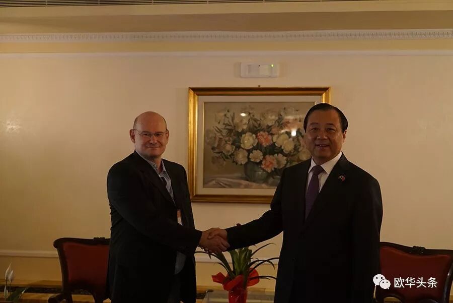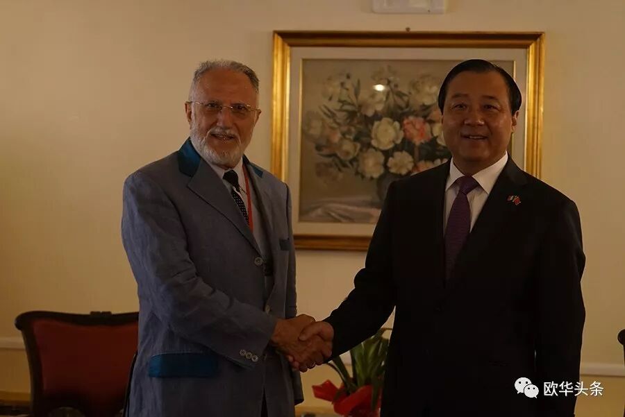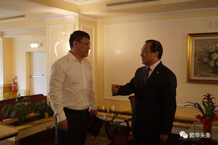 ▲米兰总领事舘张洪副总领事与扬州市委书记谢正义先生亲切友好交流