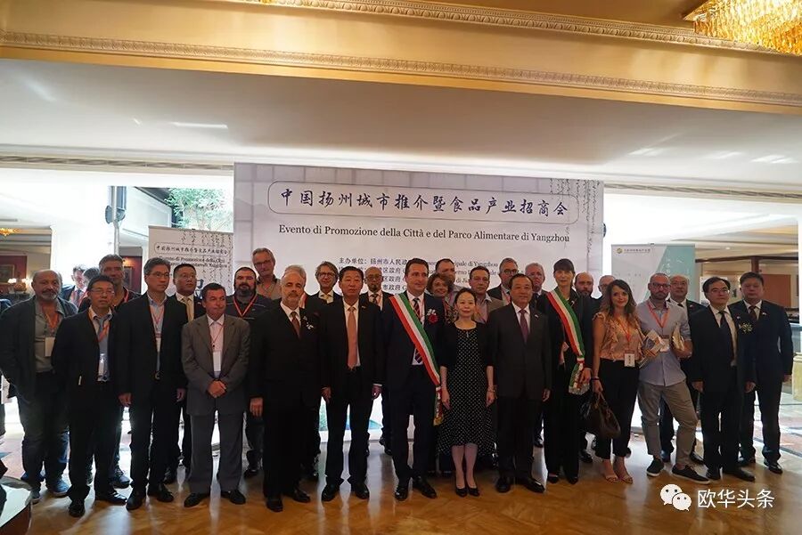 此次扬州城市推介暨食品产业招商会吸引了很多中意嘉宾、社会各界友好人士前来,中国驻米兰总领馆副总领事张洪、艾米利亚.罗马涅大区副主席马蒂.伊奥莱、米兰省中国政府关系顾问斯戴法诺.马蒂诺、意大利奎斯泰洛市政府市长卢克·马拉瓦西、加比切马雷市长·帕斯库齐、意大利亚德里亚华商会会长周中星、意大利摩德纳华商会留伟勇、帕尔马加仑尼火腿集团公司董事长克劳蒂、意大利LA SCINTILLA 连锁冰激凌公司总经理可可· 兰贝托、柏格森·马可 意大利Trattoria Al Vedel帕尔玛米其林餐饮董事长、布鲁诺·雷内里 意大利Gain 盖尼集团主席、 萨马拉孔·保罗 意大利贾尔厨师职业学院教授、斯蒂芬诺 曼托瓦省兽牧业科技养殖公司董事长、卢西亚诺 意大利曼托瓦酒业协会主席 阿莱西奥 意大利ECO S.R.L.百货连锁集团董事长及Coop Italia S.P.A.意大利连锁超市集团负责人、Parmalat S.P.A.意大利乳制品集团负责人、Amadori S.P.A.肉类加工集团负责人 等政府官员、中外企业家、华人华侨、华文媒体上百人出席,招商会由扬州市外事办公室主任朱勇主持。