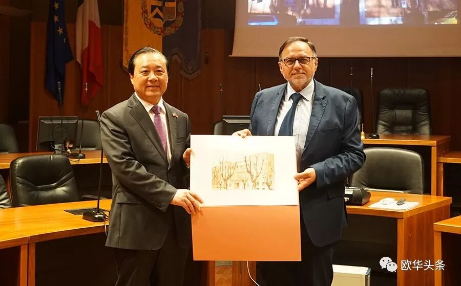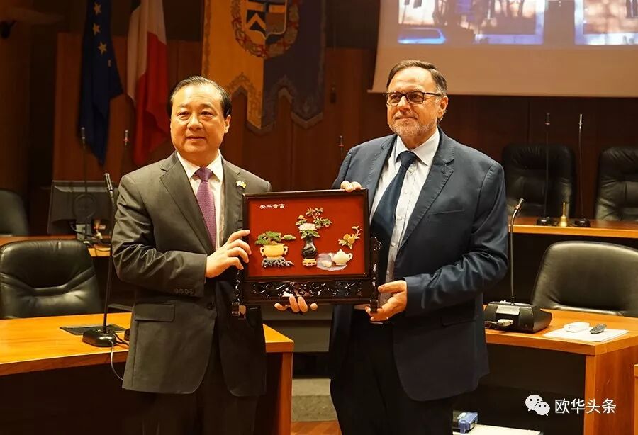 ▲扬州市委书记谢正义与摩德那省长吉安·多梅尼科·托梅 (Gian Domenico Tomei)