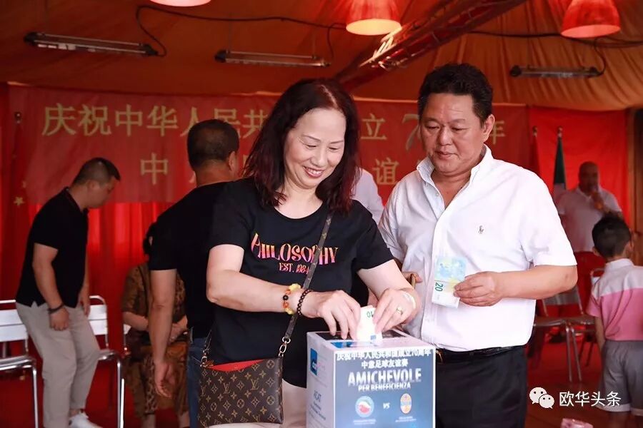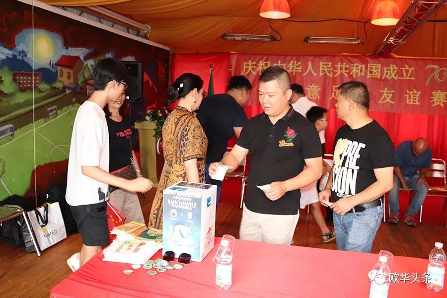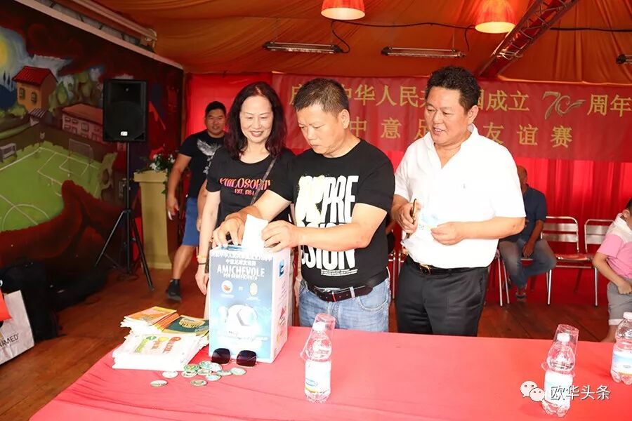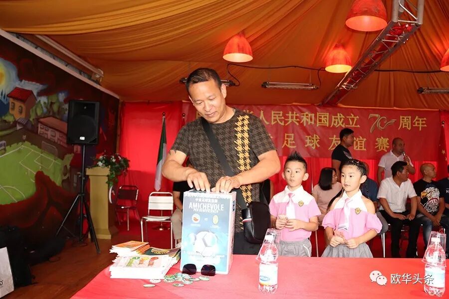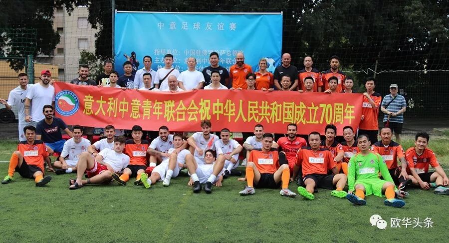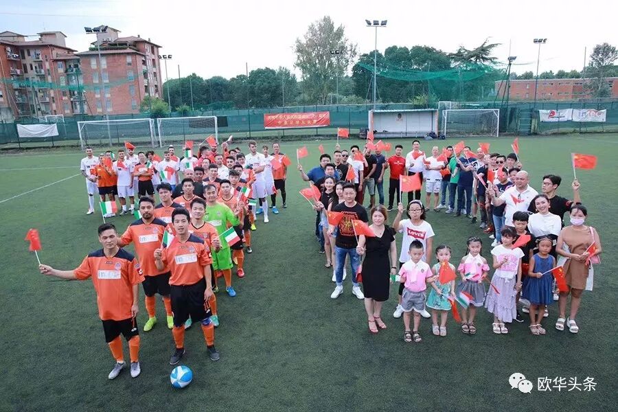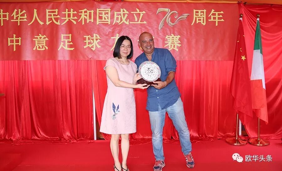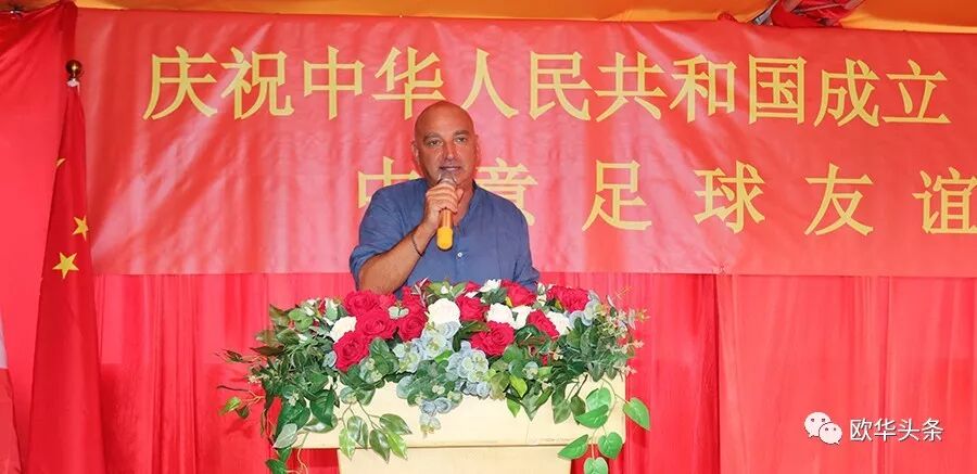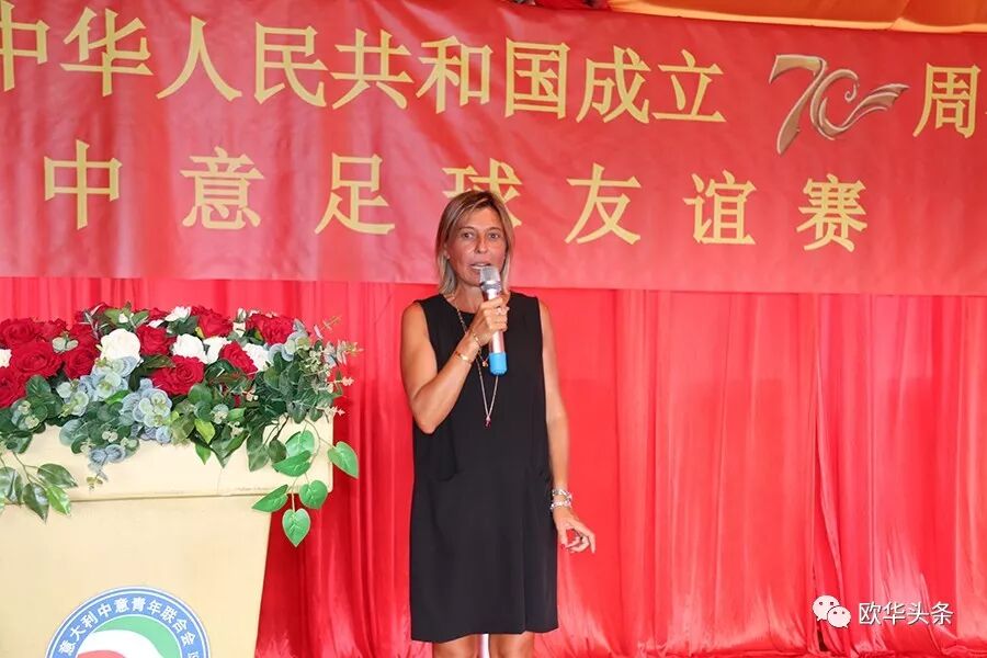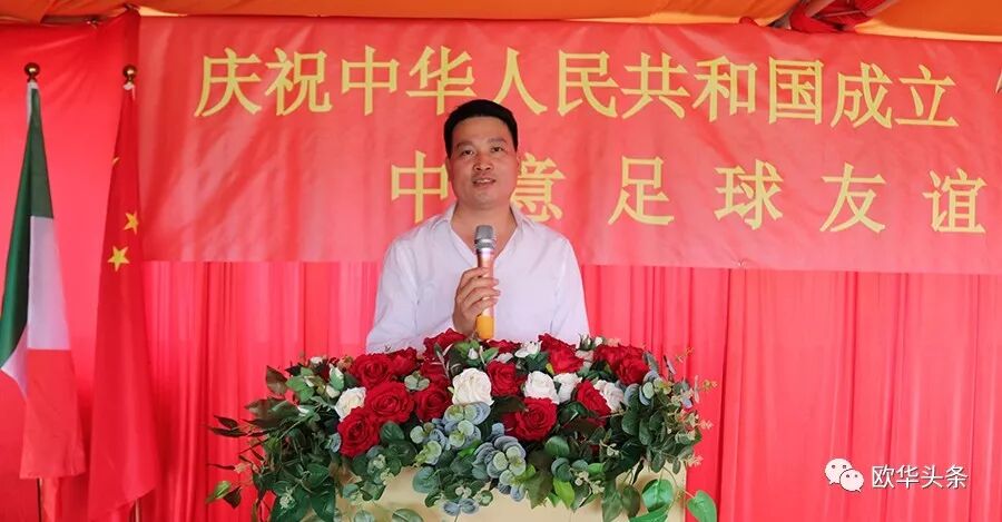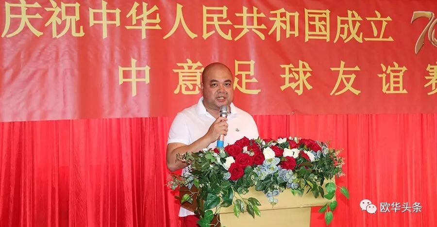 中意青年联合会会长郑再生首先在此次足球赛现场致辞,感谢在庆祝中华人民共和国成立70周年之际,中意青年联合会在中国驻佛罗伦萨总领馆的指导下,举办这场中意足球友谊赛,一是为我们伟大的祖国70华诞送祝福,又是增加中意两国年轻一代的相互交流、相互沟通,相信两国的年轻人通过这样的活动会更加深入的相互了解,多为华人积极融入当地主流社会架设桥梁;更相信两国人民的友谊会像绿茵场上运动健儿的汗水一样,一点一滴在积累,希望以后继续在体育、文化、教育、经济等领域有更多的交流与合作。郑再生会长在致辞中强调,新中国成立后,中国人民从站起来,到富起来到今天的强起来,从一穷二白到现在成为世界强国之列,我们在几代国家领导人的英明领导下艰苦奋斗,团结一致,尤其在改革开放40多年来祖国取得有目共睹的伟大成就,在这特殊的日子里,我们祝祖国繁荣昌盛,早日实现祖国和平统一,愿中意两国友谊之树长青!