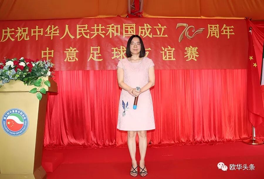 中国驻佛罗伦萨总领馆崔音副总领事很高兴应中意青年联合会郑再生会长的邀请,出席为庆祝中华人民共和国成立70周年举办的中意足球友谊赛,崔音副总领事代表中国驻佛罗伦萨总领馆王文刚总领事预祝此次活动取得圆满成功。她在致辞中提到意大利是足球强国,曾四次获得世界杯冠军,很多意大利球星在中国可以说是家喻户晓。中国的足球运动历史悠久,有史料记载,人类最早的足球运动蹴鞠是起源于2300年前的中国。近年来,中国高度重视足球事业的发展,虚心向意大利等足球强国学习借鉴,2016年中国足协聘请马尔切洛里皮担任中国国家男子足球队主教练,两国之间的交流和合作越来越密切,目前中意发展面临难得的发展机遇,明年还将迎来建交50周年。作为双边关系的重要组成部分,两国的人文领域的交流与合作,也面临着发展的机遇,崔音副总领事表示中国驻佛罗伦萨总领馆愿积极支持中意在足球事业方面的发展,不断挖掘合作新潜力,深化两国友好关系,也希望领区内侨团做好中意友好的使者,为中国建设体育大国和体育强国的贡献自己的一份力量。致辞最后,崔音副总领事希望此类运动能够长期举办,越办越多越办越好,希望两支队伍努力拼搏、奋勇争先、赛出水平、赛出风格益处。