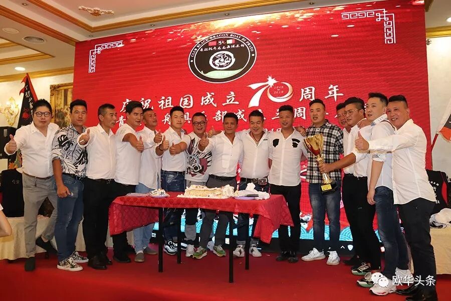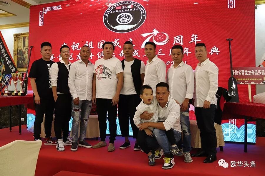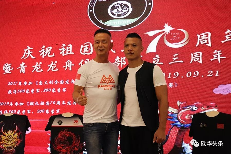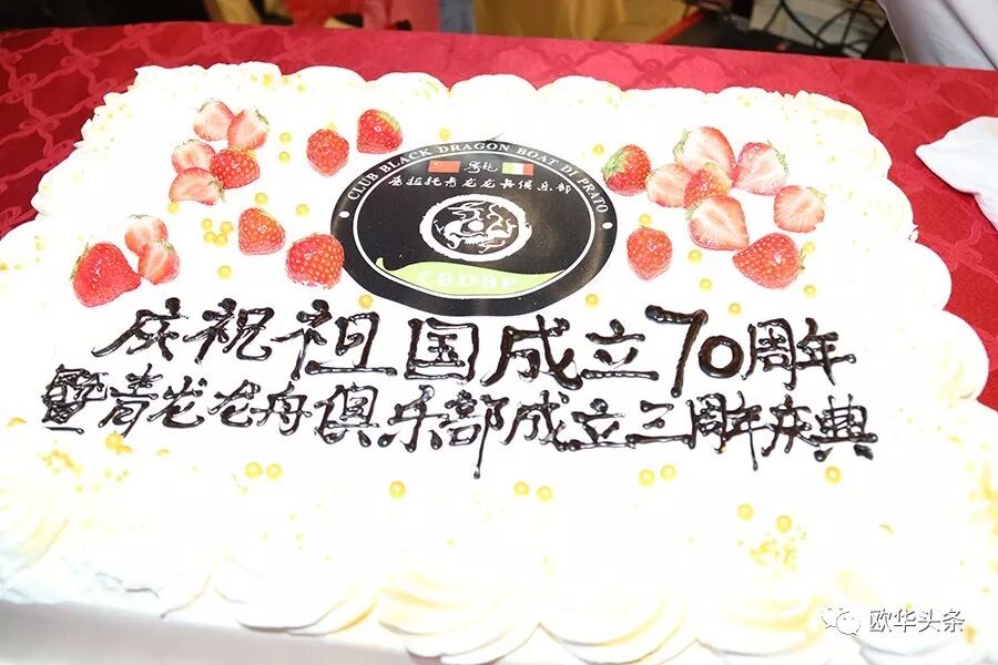 在庆典活动期间还举行了切蛋糕仪式,“赛赛赛”的口号一次一次在耳边回荡。据悉青龙龙舟俱乐部由一群兴趣相投,并热爱中华传统文化的旅意青年华裔自发组织、成立的民间团体,在成立的三年时间里,组织并参加了多次龙舟比赛,于2017年参加“意大利全国龙舟竞赛”中获得500米季军、200米季军;2018年参加“公羊会龙舟全球竞演比赛”中获得500米冠军、200米季军;2019年参加“公羊会龙舟大赛”中获得200米冠军;并于前不久在意大利罗马举行的“献礼祖国70周年龙舟友谊赛”上获得500米季军、200米季军的好成绩。龙舟队友们在强身健体的同时,不仅推广了中华传统文化,而且丰富了当地社会和侨社的文化生活,获得各界的关注与好评。