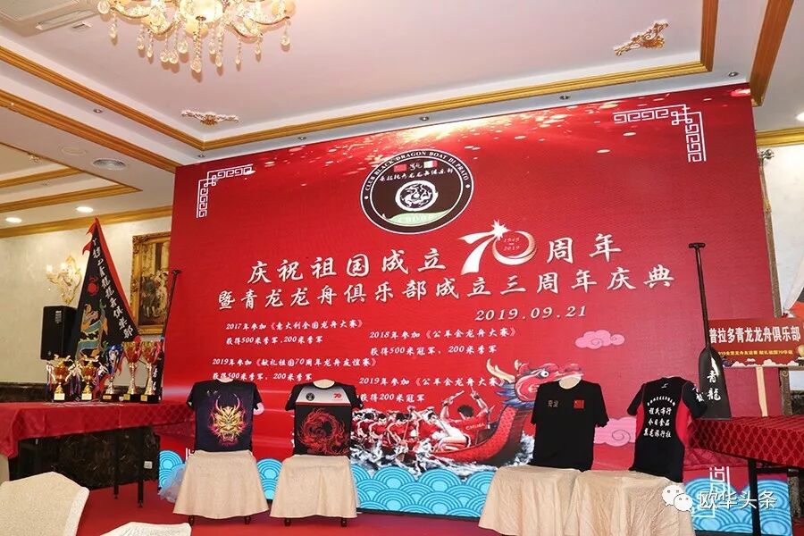 意大利《华人街》讯(记者一策):在我们伟大的祖国成立70周年华诞之际,2019年9月21日晚8时,青龙龙舟俱乐部成立三周年庆典在意大利普拉托市国际大酒店隆重举行,当晚青龙龙舟俱乐部的全体队员、教练、龙舟赛场上的竞争伙伴、及各行各业龙舟爱好者、社会各界友好人士、华文媒体上百人汇聚一堂,共同庆祝这一盛事,祝贺这三年来青龙龙舟俱乐部取得的好成绩。