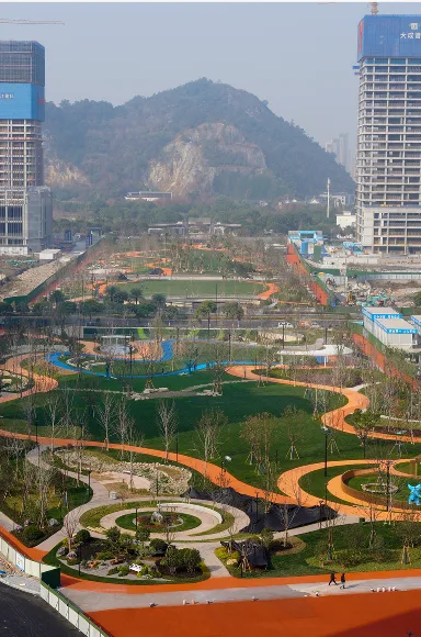 绿廊中最引人瞩目的就是近2万方高标准打造的阳光大草坪,对照足球场高标准草坪,达到接近高尔夫球场水平,让市民在家门口邂逅开阔草坪与自然诗意。同时,还引入超百种苗木,打造了绣球花坡、粉黛云雾、蓝雾弥漫等特色植物景观,让市民在行进间亲近自然,沉浸式感受绿色生活的魅力。