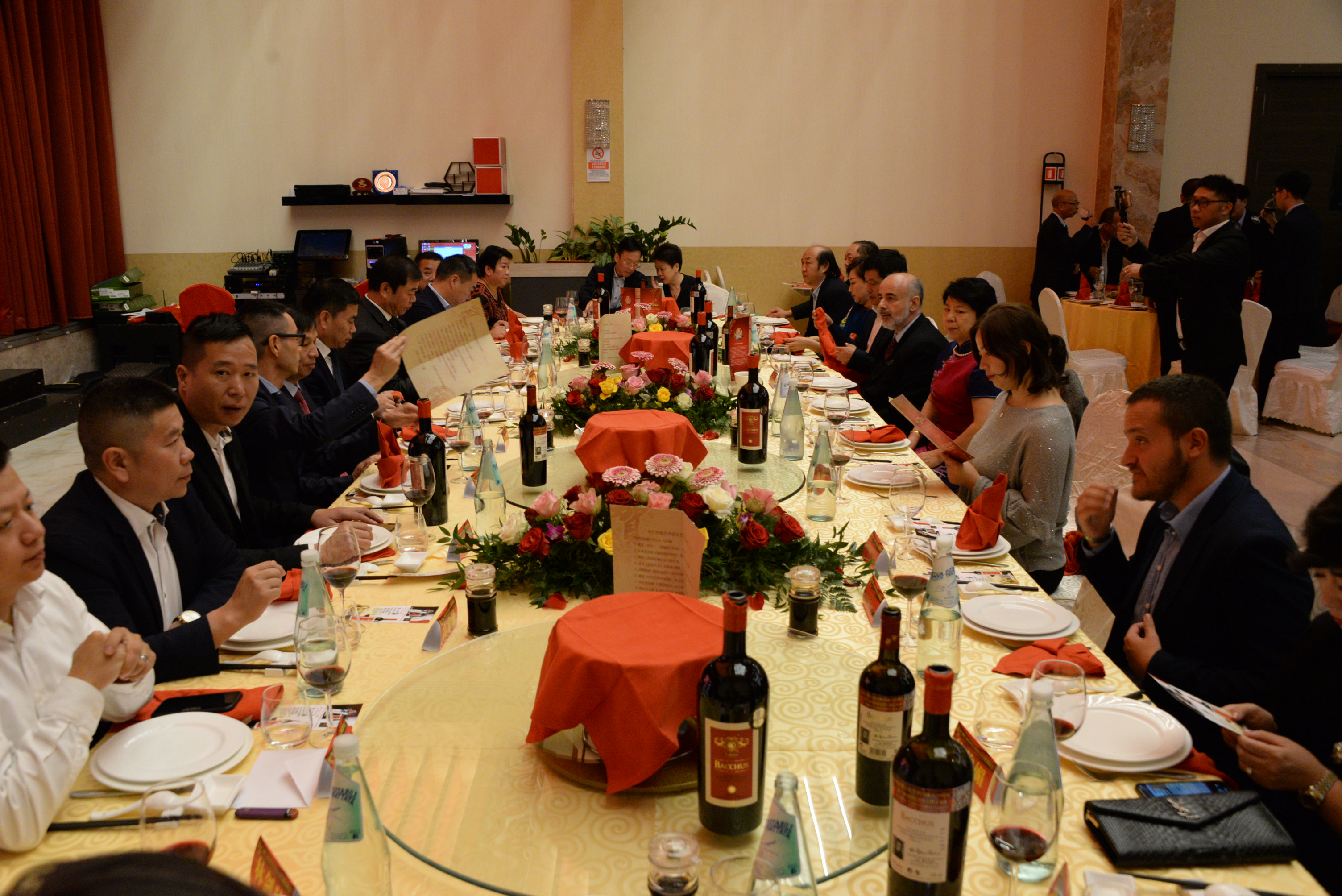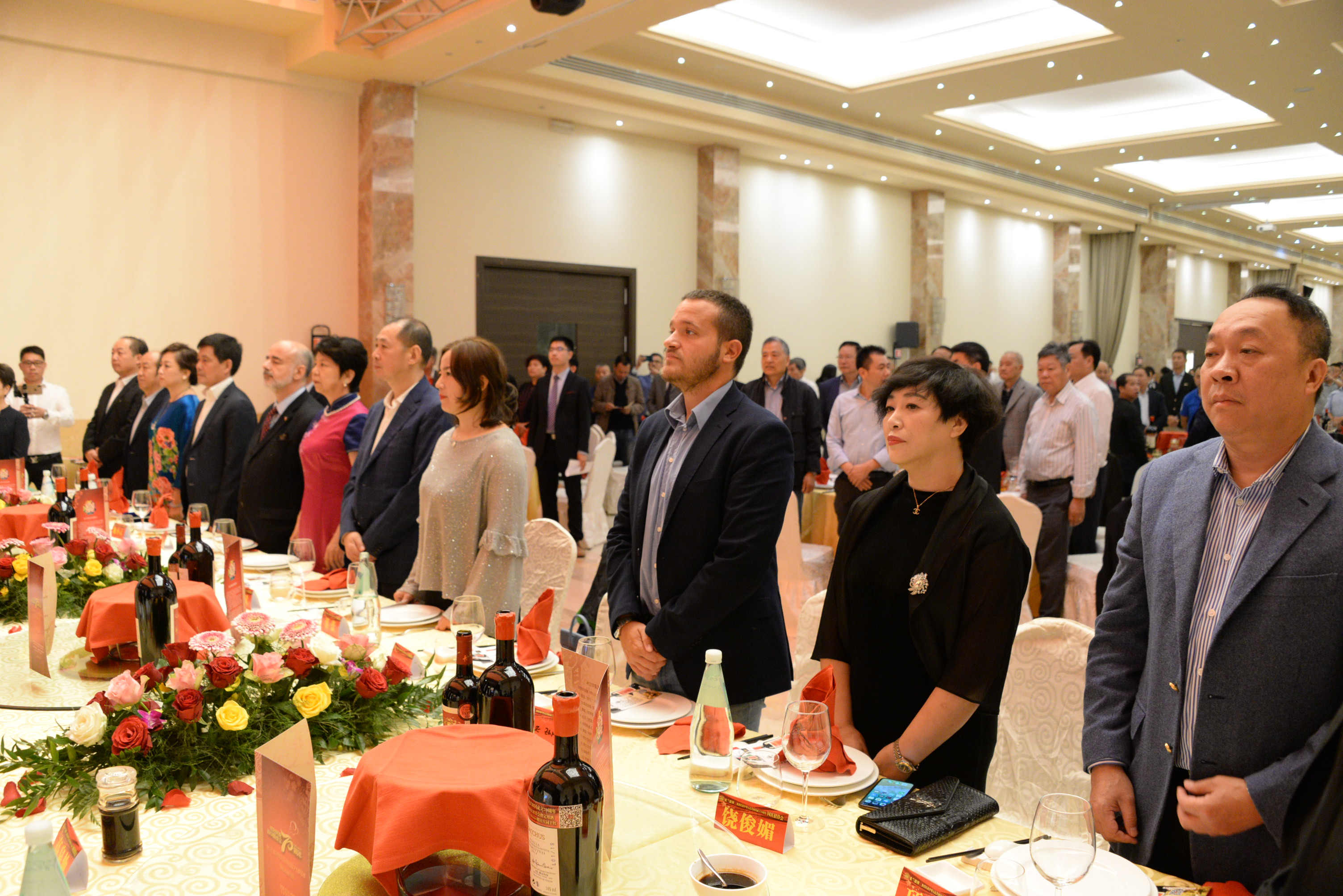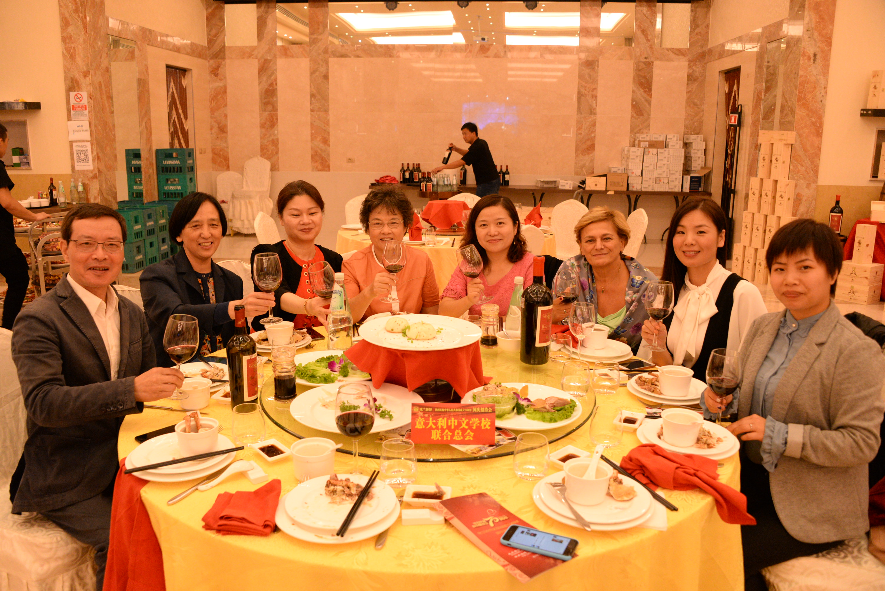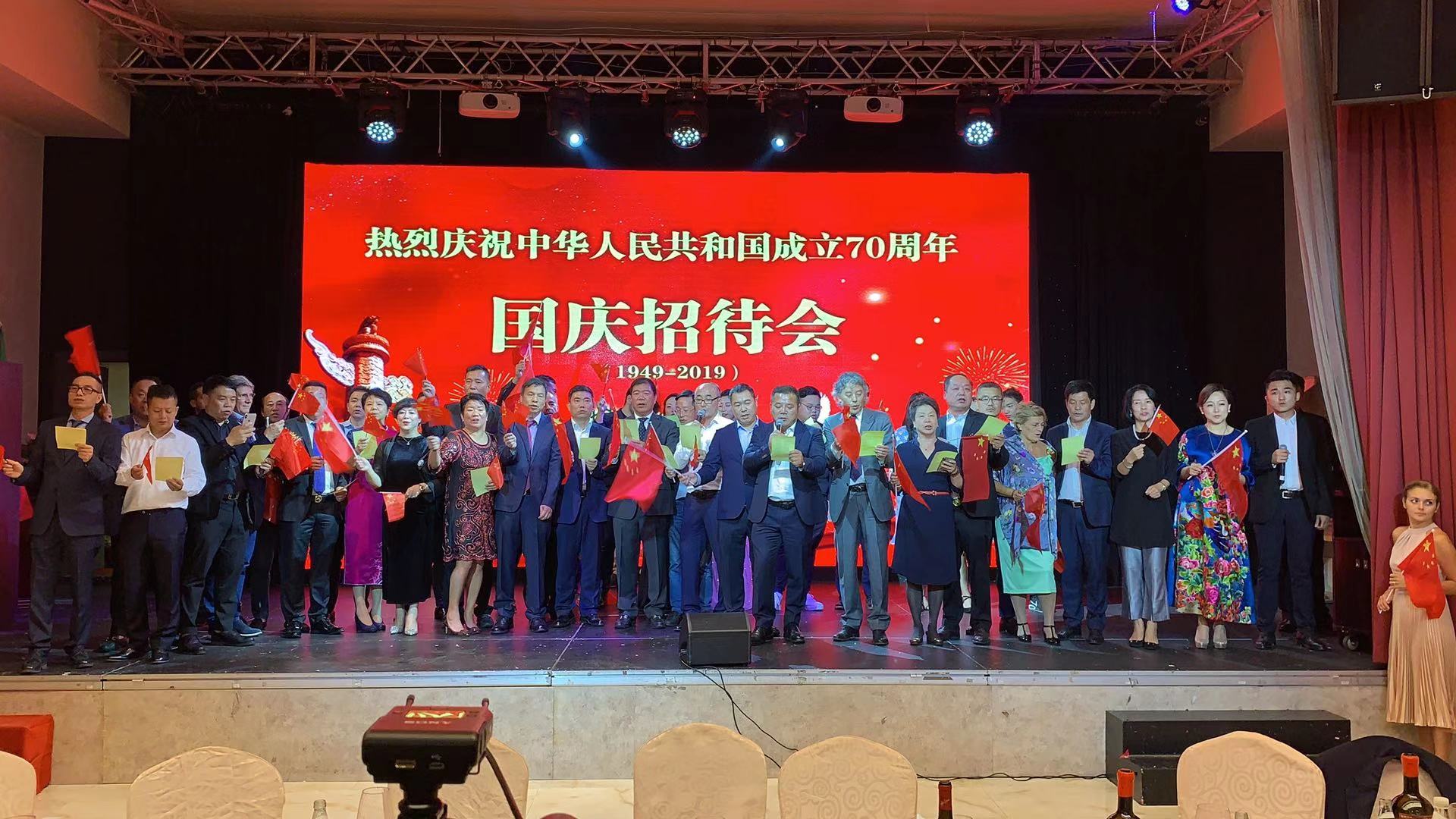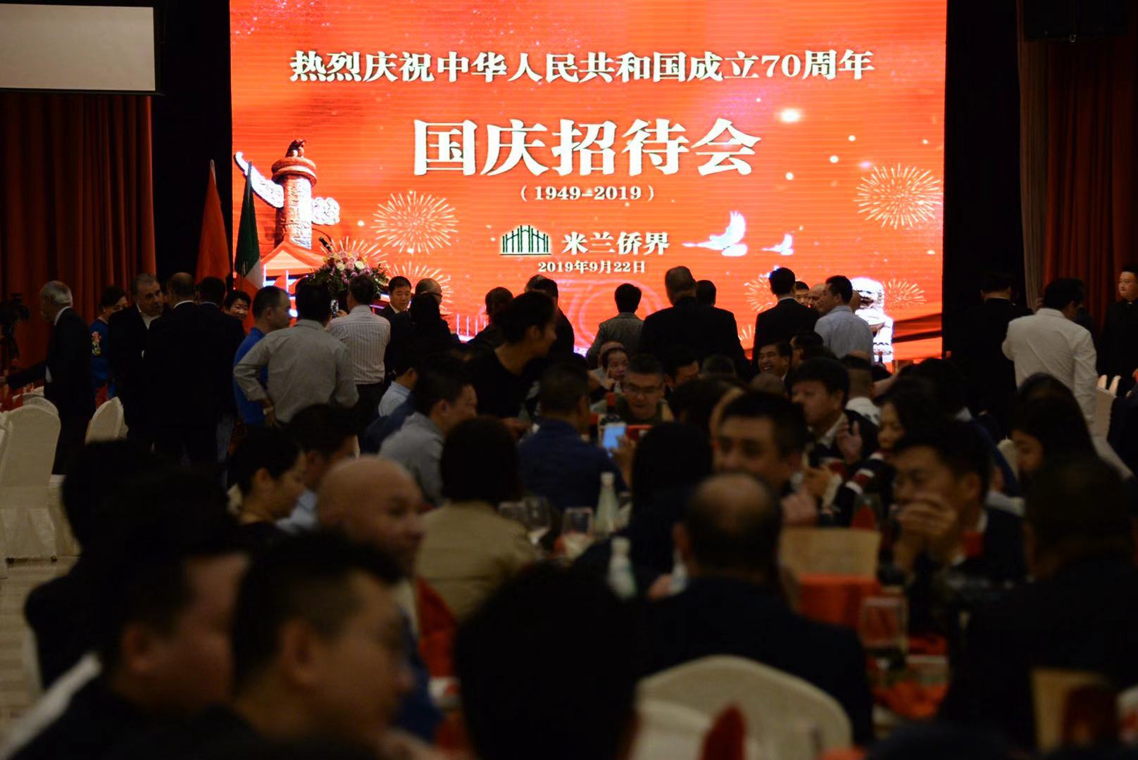 本次国庆招待会指定用酒由意大利圣贝尼阿巴诺庄园特约赞助。招待会上,米兰华星艺术团和妇女团体为大家呈现了一场歌舞盛宴,各界人士共同庆祝中华人民共和国成立70周年,对中国取得的发展成就表示惊叹赞誉,期盼中意友好合作关系取得更大发展。在晚会的最后,演职人员与主要领导、嘉宾共同演唱了《歌唱祖国》,大家挥舞着国旗祝福我们的伟大祖国欣欣向荣,繁荣昌盛!