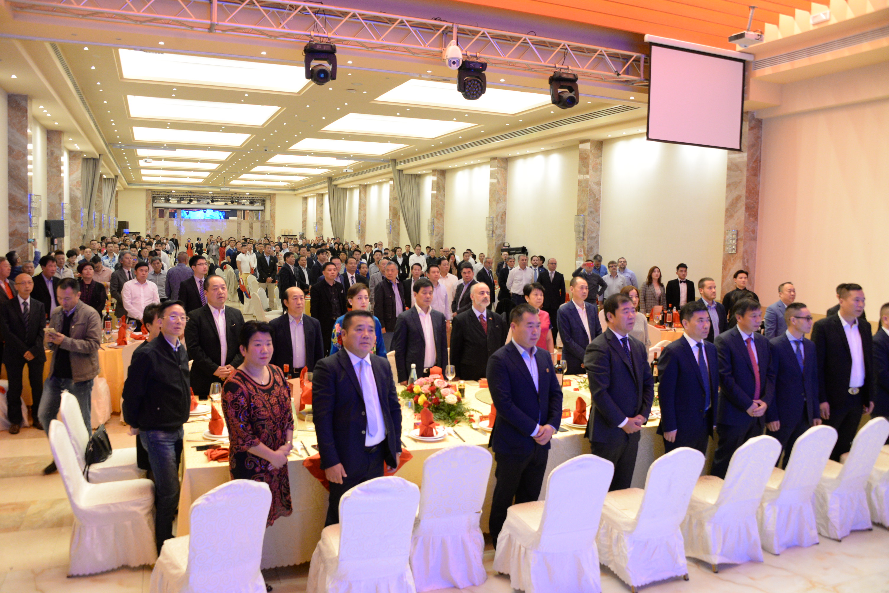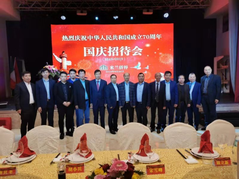 意大利《华人街》消息:2019年9月22日晚间,米兰新聚宾大酒店张灯结彩、国旗飘扬,米兰侨界在此隆重举办新中国成立70周年国庆招待会,驻米兰总领馆宋雪峰总领事、汪惠娟副总领事、蔡蕾主任及馆员;伦巴第大区议员Gianmarco Senna、米兰一区主席fabio arrigoni、八区主席Simone Zambelli;米兰各侨团代表、老侨领、中资企业留学生代表及意大利友人400多人参加了盛会。