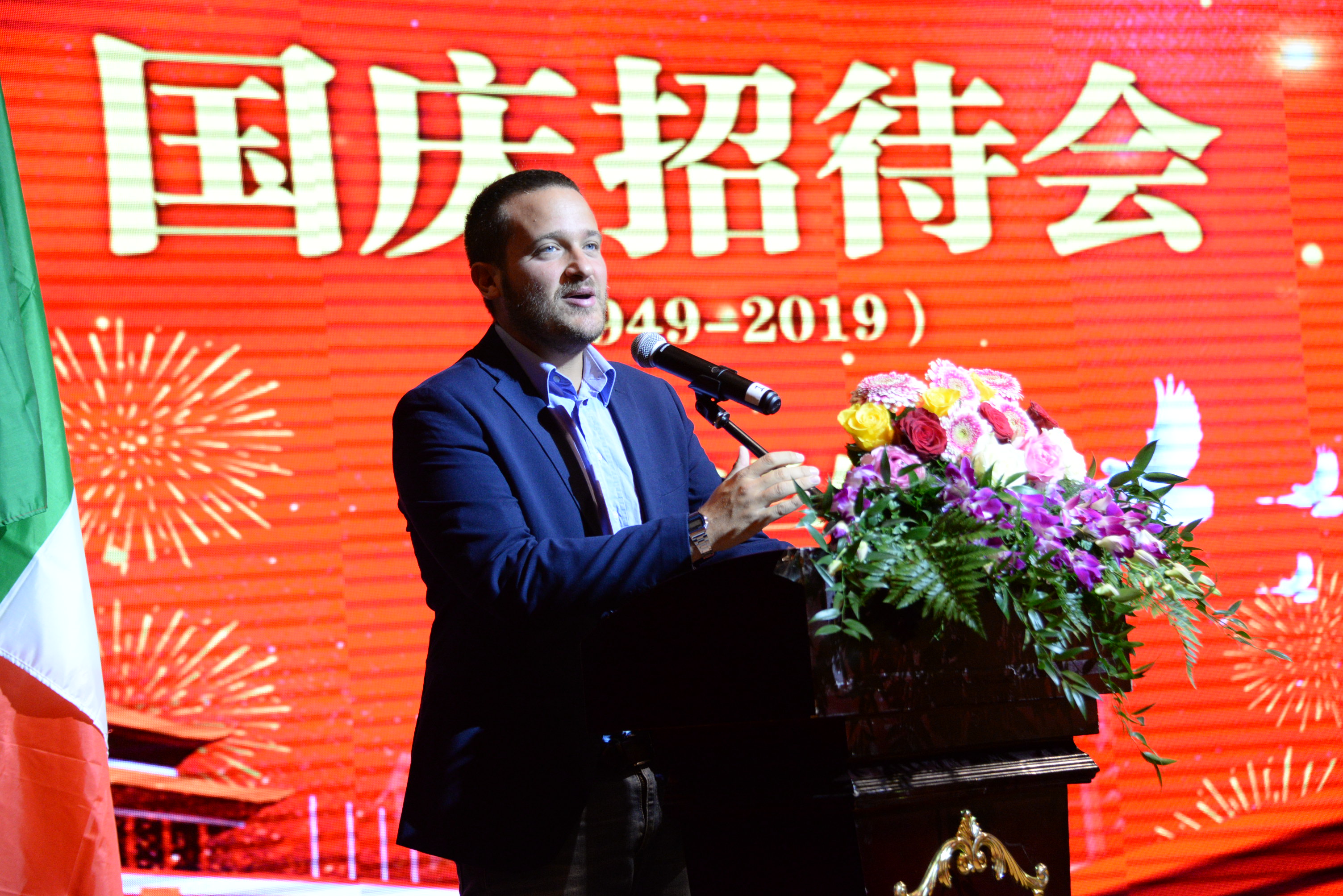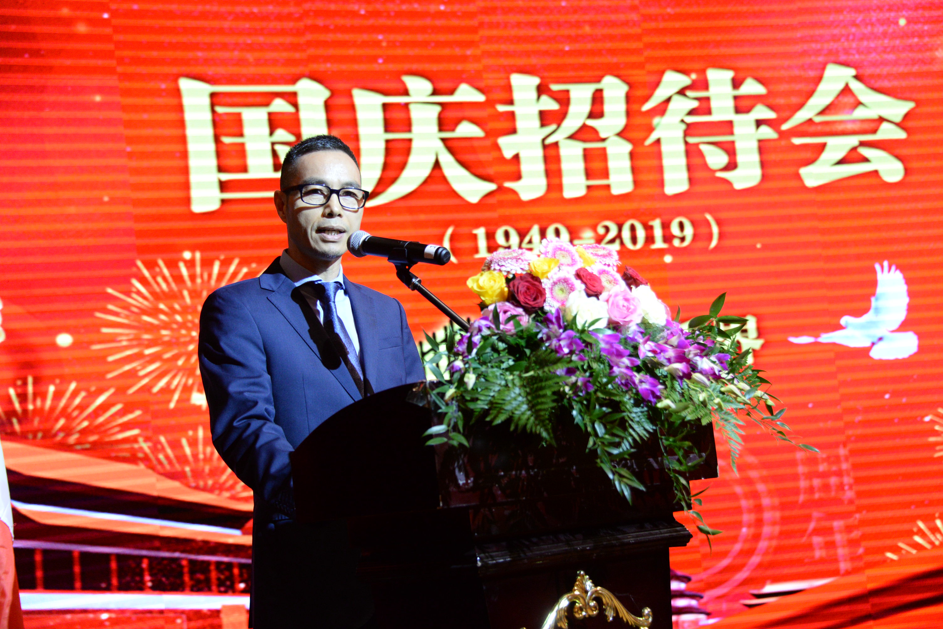 招待会由米兰浙江华侨华人联谊会会长温阳东主持,米兰温州商会会长曹其考代表米兰侨界致辞。他说,在普天同庆的中华人民共和国成立70周年即将到来之际。今晚,我们米兰侨界欢聚一堂,联合在此隆重举行“喜迎国庆70华诞大型招待会”。首先,我受米兰侨界的重托,谨代表米兰侨界向应邀出席今晚招待会的各位领导、各位来宾、各位朋友表示热烈的欢迎!同时,提前向大家致以节日最诚挚的问候!1949年,我们祖国从一片废墟中走出来;从一穷二白的国土上站起来;坚持自力更生,艰苦奋斗,摸索出一条适合中国国情的社会主义道路。继而从改革开放中富裕起来,从砥砺奋进中强大起来。建国70年来,在中国共产党的坚强领导下,中国人民以众志成城的决心,以敢为人先的勇气,以百折不挠的意志,谱写了中华民族惊天动地的壮丽诗篇。城乡面貌焕然一新,人民生活水平显著提高,综合国力不断增强,各项事业取得了举世瞩目的伟大成就。从此,也赢得了世界各国人民的尊重。我们海外华侨华人,虽然远离祖国。但是,我们都是伴随着祖国的发展而成长起来的。我们是祖国现代化建设与发展的参与者、见证者、也是受益者。我们的命运与祖国息息相关,更离不开强大祖国作为后盾。意大利是我们的第二大故乡,我们热爱祖国,也热爱意大利。我们要发挥自己的优势和作用,搭建起中意两国人民友好交往的桥梁,参与“一带一路”建设,积极推动中意双边经贸合作,把我们自身事业做大、做强。继续关心和支持祖国的建设与发展,为实现祖国完全统一与中华民族伟大复兴作出我们应有的贡献!