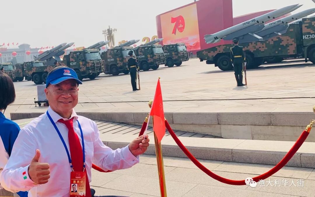 意大利威尼斯地区华侨总会会长陈仲伟说,2019年10月1日是让中国人民和海外侨胞值得永远纪念和兴奋的日子,让我有幸近距离、在现场见证这一神圣的历史时刻。这是我们一生中最大的荣耀,大阅兵使我更加坚信祖国有能力实现和平发展,振奋民族精神,激发我们海外华侨华人共圆中国梦的决心。我觉得中国更自信了,人民更自强了,民族更自立了!我们更爱祖国了!
