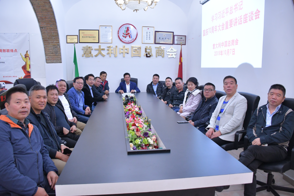 意大利中国总商会部分会长团成员在出席学习会上用亲身的体会畅谈新中国70年辉煌的成就和阅兵仪式观后感,大家一致认为“强国复兴有我担当,我们有义务也有责任,把中国发展的故事带出国门和海外同胞以及居住国分享。”