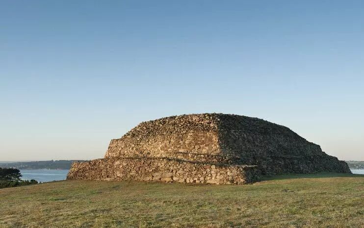 巴尔内奈的石堆(Le cairn de Barnenez)同样是欧洲最大的陵墓。修建于公元前4500年到3900年间,巨石墓堆有75米长,28米宽,隐藏着11个墓室。它由两个不同时期的古迹组成,建造时间更为久远的墓堆支撑着年代较近的建筑物屹立于此。