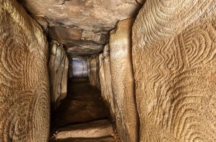 这座让人啧啧称奇的坟墓建于6000多年前,比埃及最古老的金字塔还要早2000年。石板上雕刻的标记引起人们注意:木棒,斧头,抹香鲸?它由土和石头组成,直径28米,高3米,包含两个巨石墓,每个墓室都有一条狭长的走廊。