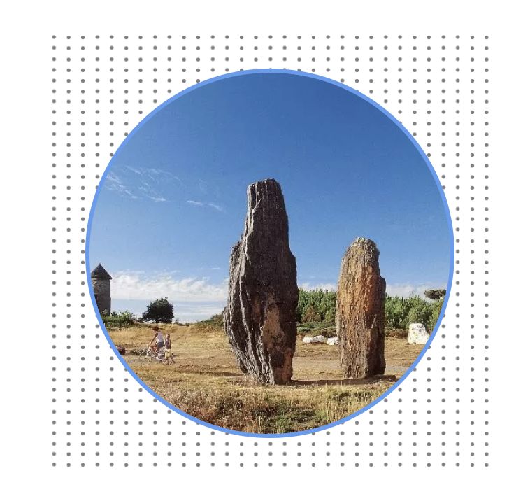布列塔尼的大地充满历史和传说,保存了许多从过去文明遗留下来的古迹。公元前4000至6000年间的石柱,石棚,古墓,石圈或是一行行整齐排列的石阵,四处分布在“古老热土全新发现”行程途径的城市或其周围。这里是欧洲巨石阵最为集中的地方。