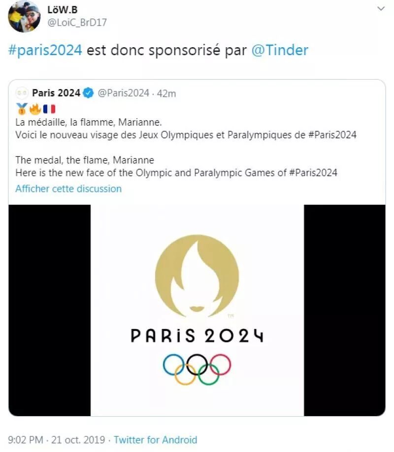 网友A:“Tinder是2024年巴黎奥运会的赞助商吗???”