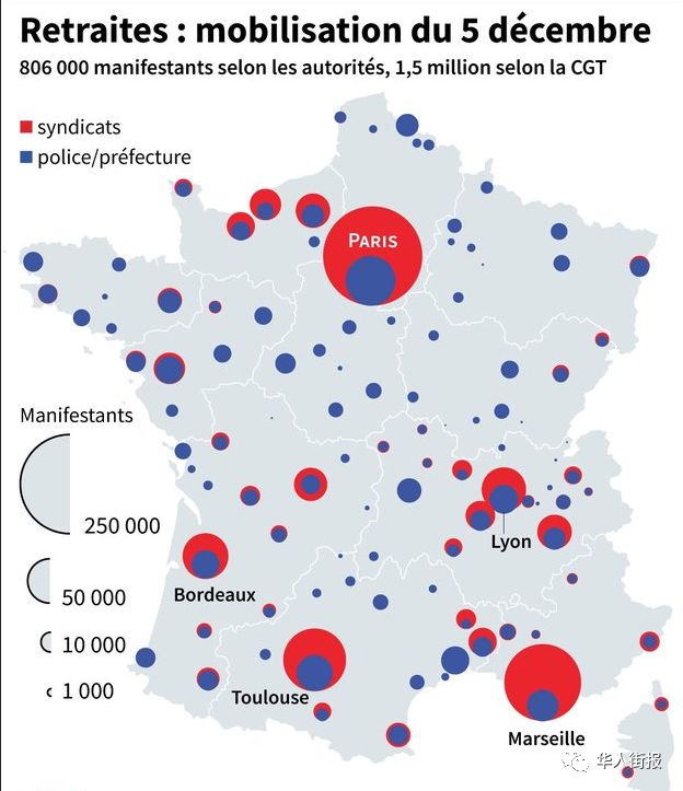 然而,大游行过后两天,12月7日的民意调查显示,53%的法国人表示支持罢工者,这一数字比游行前上升了6个百分点。