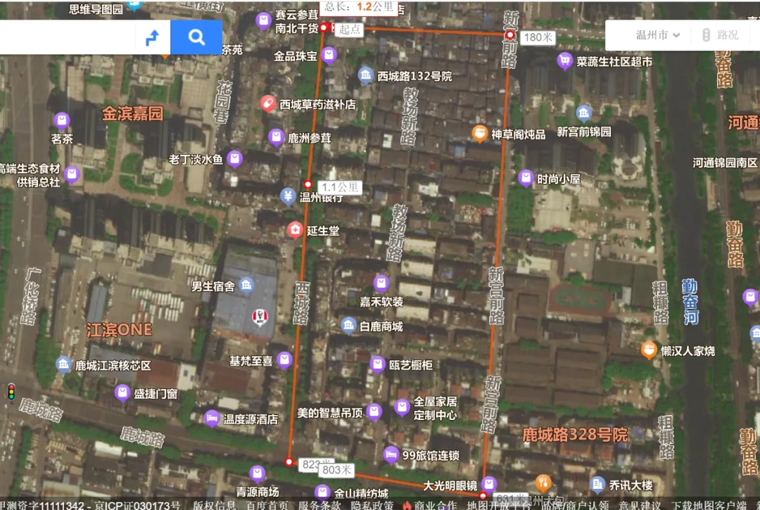 温州西郊教场旧址范围示意(红线区域内),王长明标注,底图来源:百度地图。