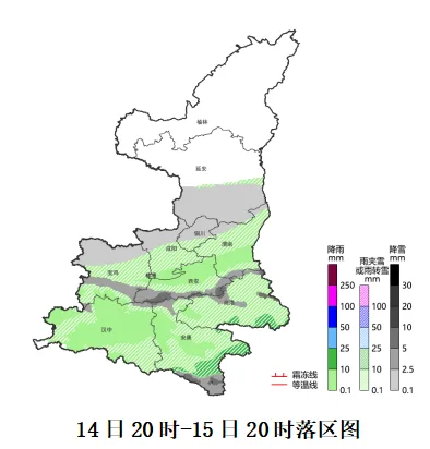 02月15日20时-02月16日20时:全省阴天,秦巴山区东段、商洛有小雪(0~1毫米),汉中南部局地、安康南部有小雨或雨夹雪(0~8毫米)。陕南大部日平均气温下降4℃左右。