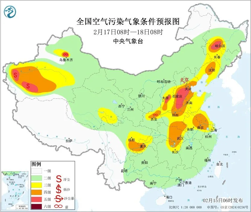 15日至16日白天,区域大部地区大气扩散条件一般,山西中南部、陕西关中等地有间歇性轻度霾。16日夜间起,区域北部大气扩散条件逐渐转差,有轻至中度霾。