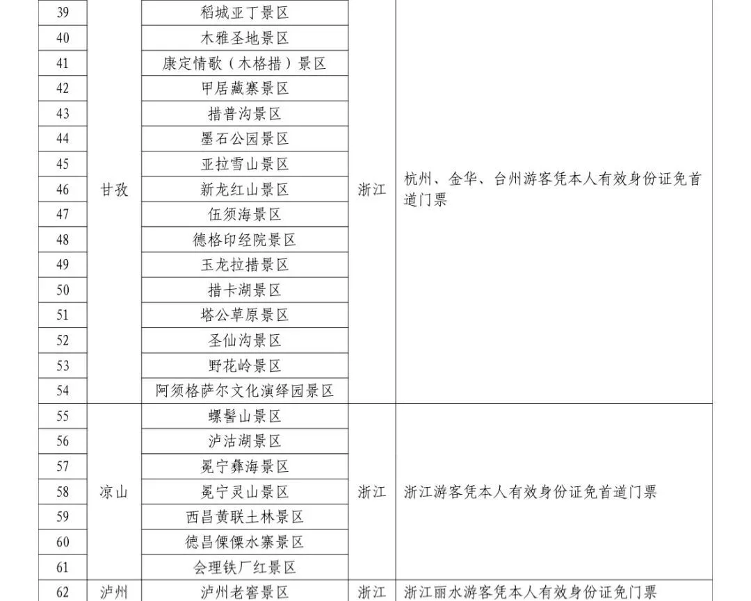 四川62家A级景区
