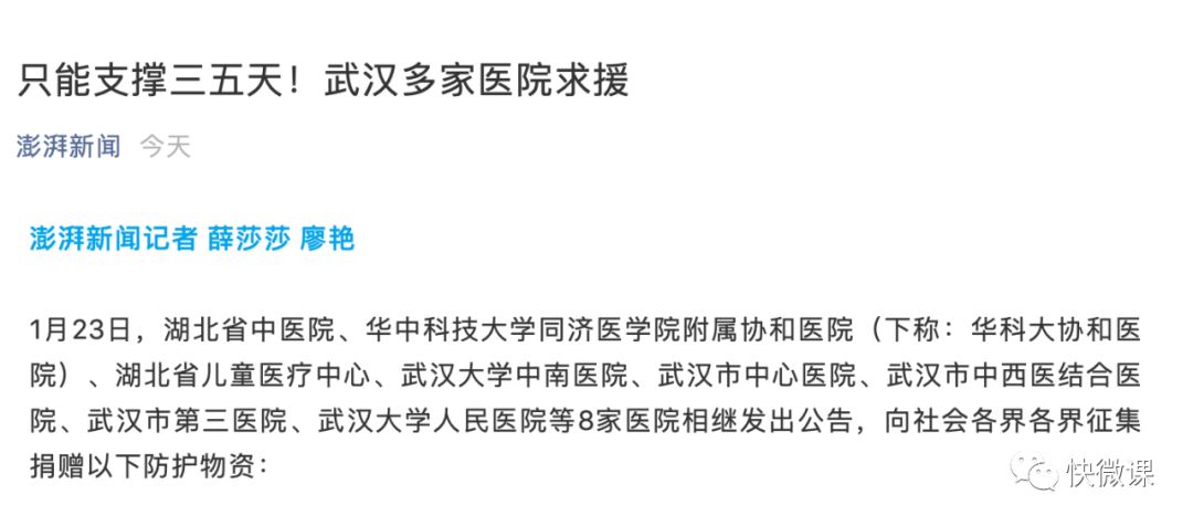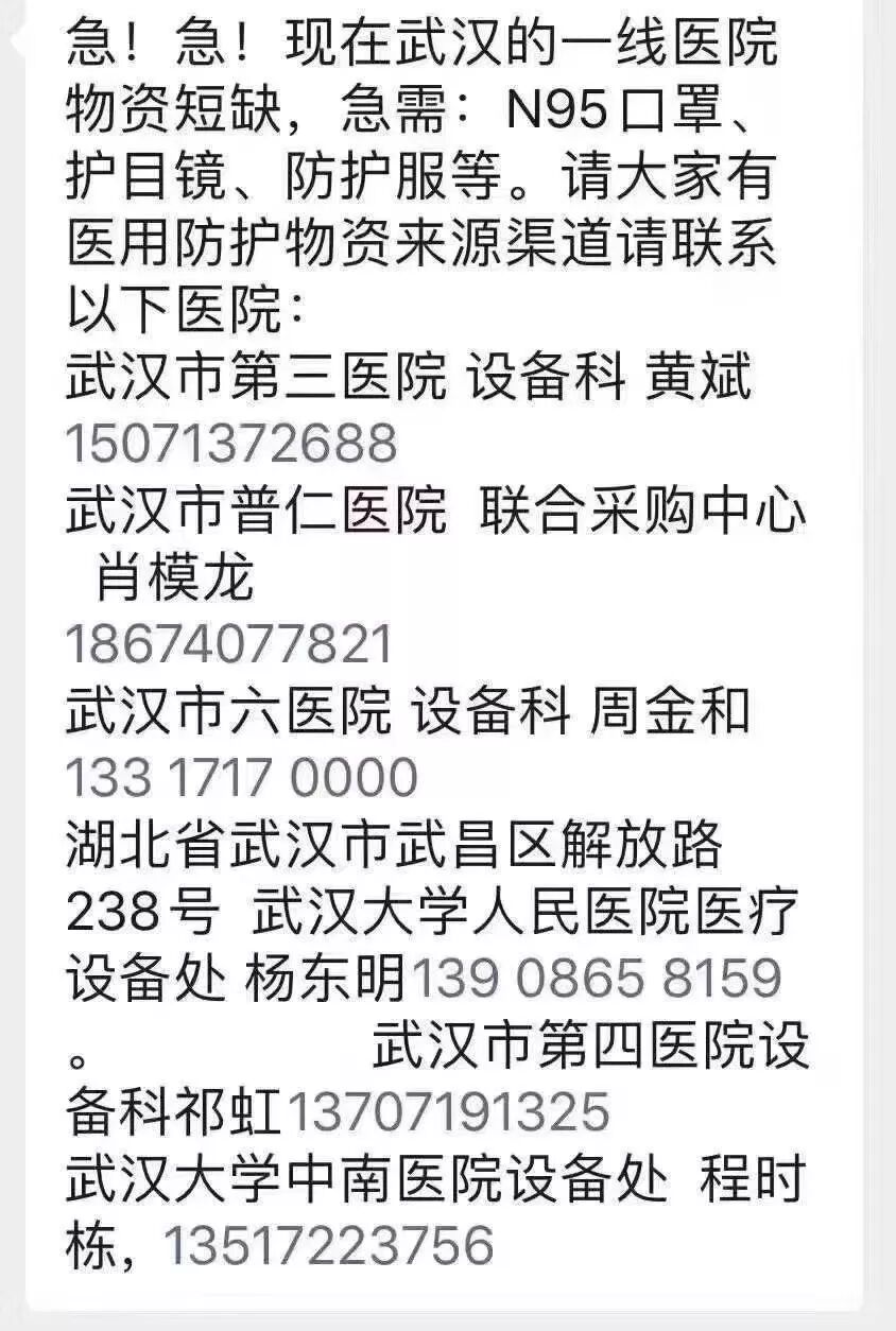 我们自媒体只能尽一点微薄之力力求转发扩散!不需要关注这个号社会各界如有相关资源,恳请向武汉医护伸出援助之手!