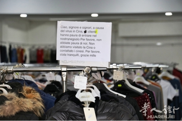 意大利南部Reggio Calabria市via Ipponio一家华人商店老板于星期六2月8日上午贴了一张牌子,上面写着:“女士们,先生们大家好,因为中国的新冠肺炎病毒,客人都害怕进入我们的店里了,拜托,你们不需要害怕,我们没去过中国或跟中国人接触过,请你们放心,非常感谢”。