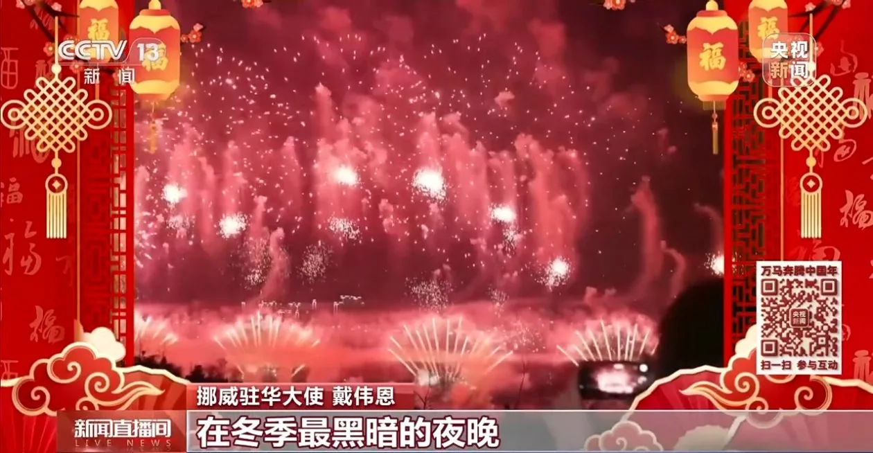 挪威驻华大使 戴伟恩:人人都需要属于自己的仪式和节日,和亲友相聚、享用美食,回顾过去一年、憧憬新的一年。在这方面,挪威和中国是一样的,我们会同自己最喜爱、最亲近的人相伴,包括家人和朋友,会准备特色美食。还有一个活动也是受到中国春节的启发,我们会在元旦放烟花。在冬季最黑暗的夜晚,我们就会点亮中国的烟花。