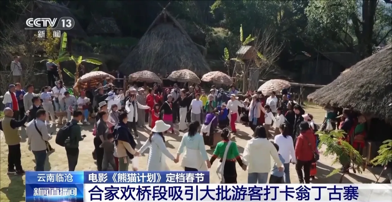 春节档电影《熊猫计划之部落奇遇记》上映临近,拍摄取景地——云南翁丁古寨也跟着火了起来,这两天迎来了大批观光打卡的游客。