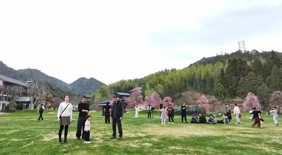 走进彩花谷度假区,山谷之间,数百株龙梅正迎着料峭春风竞相绽放。花朵挂满枝头,与山间的薄雾相映成趣。开园不久,花林间已是游人如织。来自乐清的游客NIKI身着古风长裙,在朋友的镜头前不断变换着姿势。“现在正是梅花开得最好的时候,特意打扮得漂亮点过来拍照,就想把这新春的瞬间留住。”穿行在花径之中,花香隐隐萦绕鼻尖。游客胡小英,对景区赞不绝口:“这里值得一游,我还要推荐朋友们一起来赏梅。”