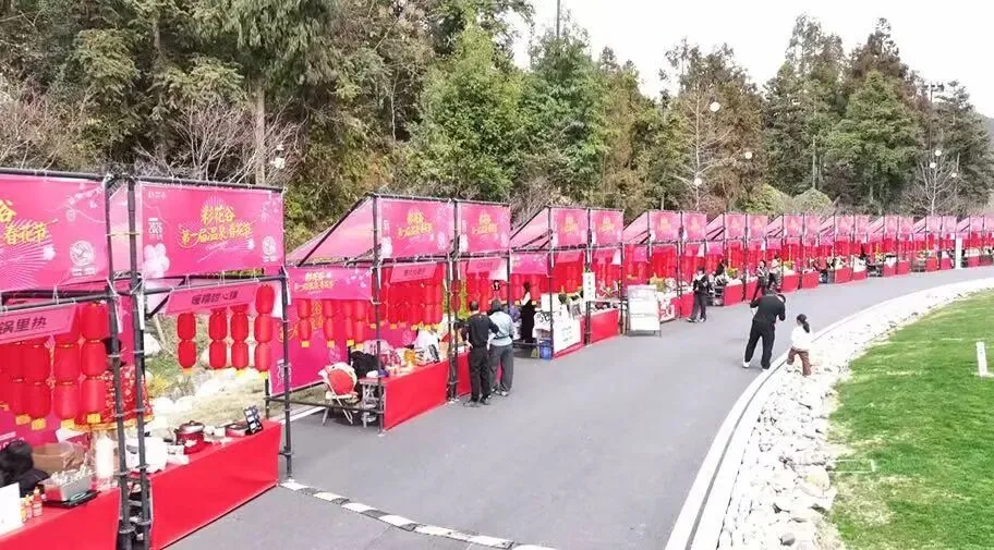 与传统赏花游不同,本次活动融入唐宋国风市集,民俗风情与新春氛围相融,年味十足。“这里年味很浓,天气也好,满是新春气息。” 宁波游客段洁直言,在彩花谷过年很惬意,既能泡温泉放松,又适合携老扶幼出游,正是当下流行的 “居家式度假”。