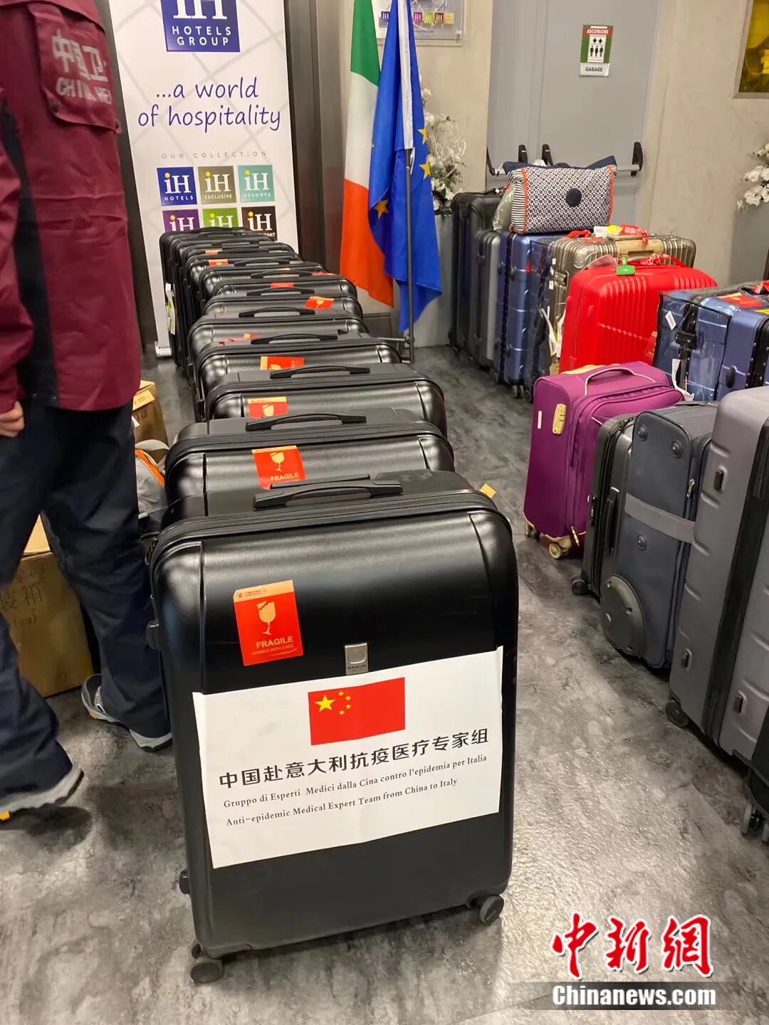 意大利当地时间3月18日,我和米兰的一群浙商一早就在酒店等待着家乡“亲人”的到来。当天,第二批中国赴意抗疫医疗专家组飞抵米兰,本来想去机场接专家组的,后来经过沟通,还是决定在酒店见面。
