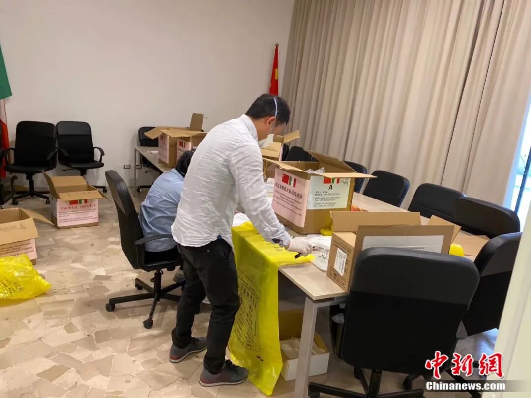 近日又迎来了浙江省医疗队,他们不仅带来了大量的医疗物资,还带来了大量的治疗用的中成药,我们先分类整理好,再根据意大利“网上方舱医院”登记的轻症患者和疑似患者名单,给他们一一发放中成药。