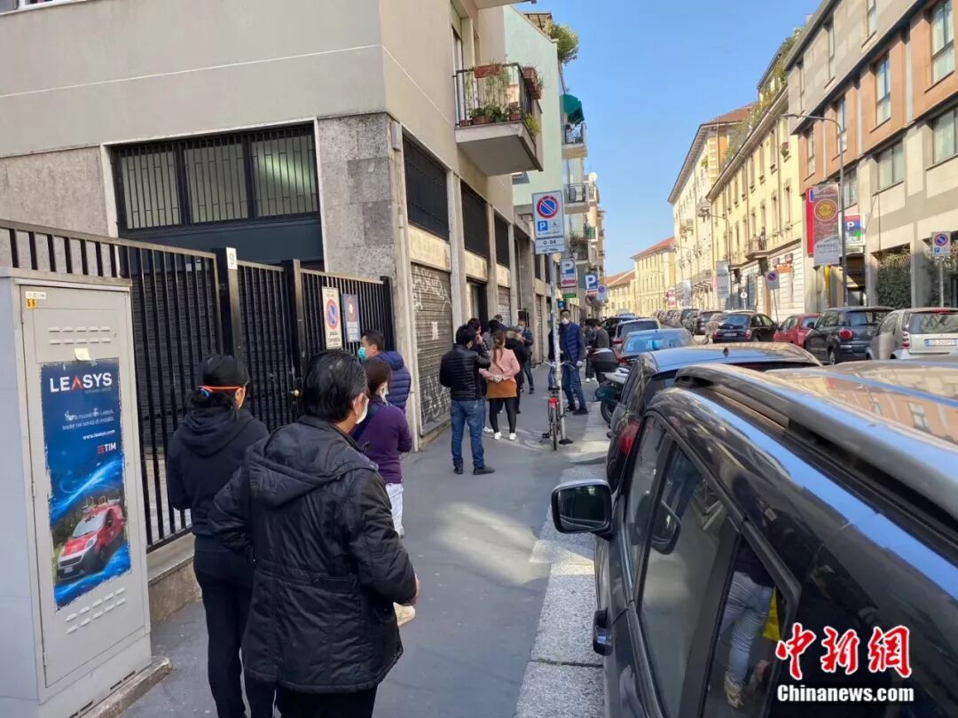 图为意大利华侨排队等待领取口罩。受访者供图