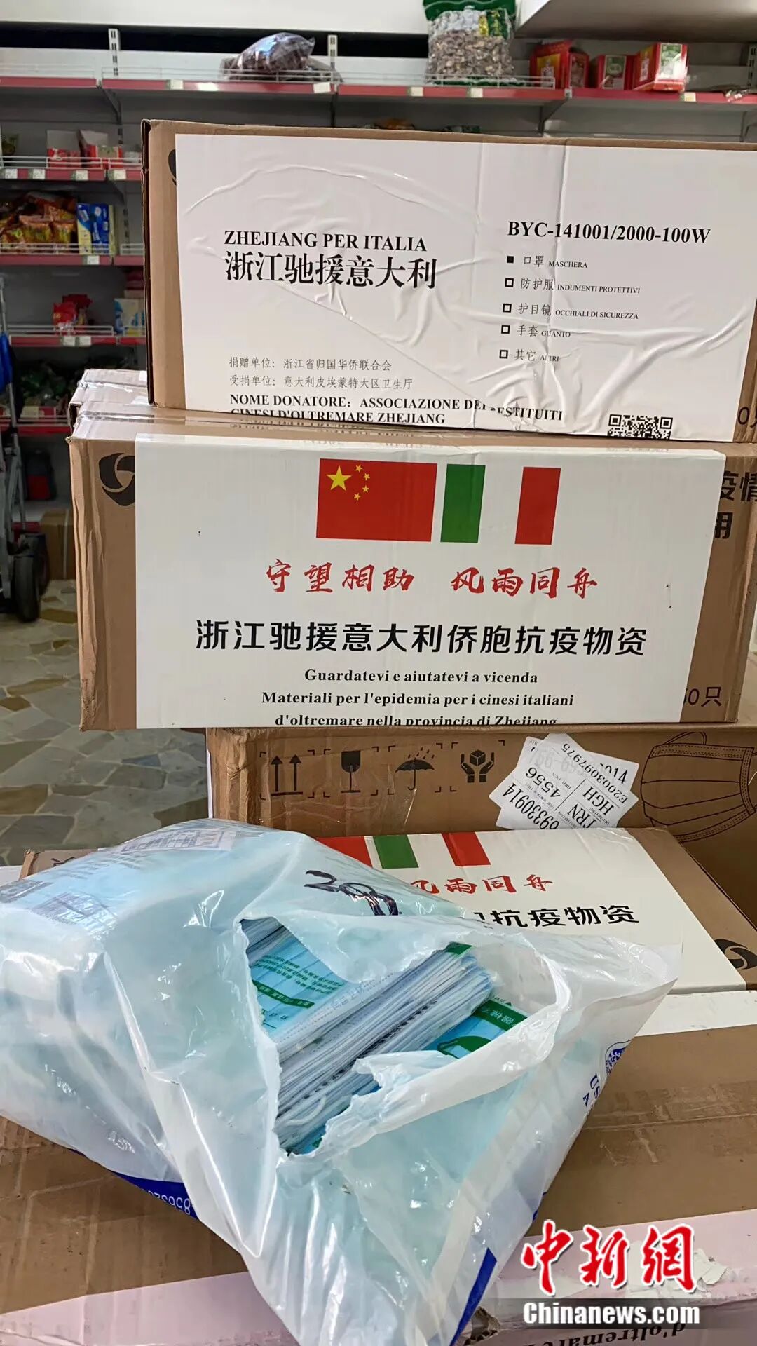 图为浙江驰援意大利侨胞抗疫物资。受访者供图