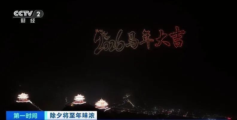 夜幕降临,千架无人机汇聚成流动的星河,在夜空中灵活穿梭。依次勾勒出奔跑的骏马、祥瑞的凤凰,“2026马年大吉”等字样在天空中织就漫天星光。