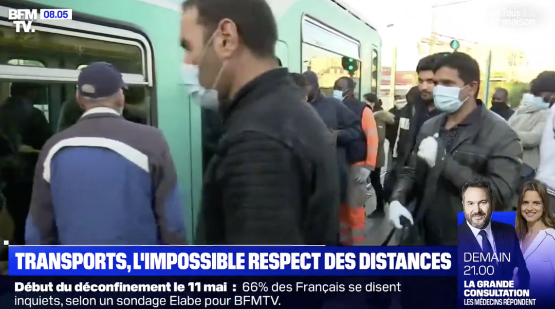 总之对法国疫情真正的考验可能要从5月11号之后才真正开始大家千万要注意健康安全啊!【END】本文图片来自网络资料来源:http://www.leparisien.fr/info-paris-ile-de-france-oise/transports/deconfinement-en-ile-de-france-un-siege-sur-deux-dans-les-transports-les-usagers-n-y-croient-pas-28-04-2020-8307636.phphttps://www.youtube.com/watch?v=syskZGgnhkEhttps://actu.orange.fr/societe/videos/coronavirus-l-impossible-respect-de-la-distanciation-sociale-dans-les-transports-en-commun-CNT000001pAQDY.html
