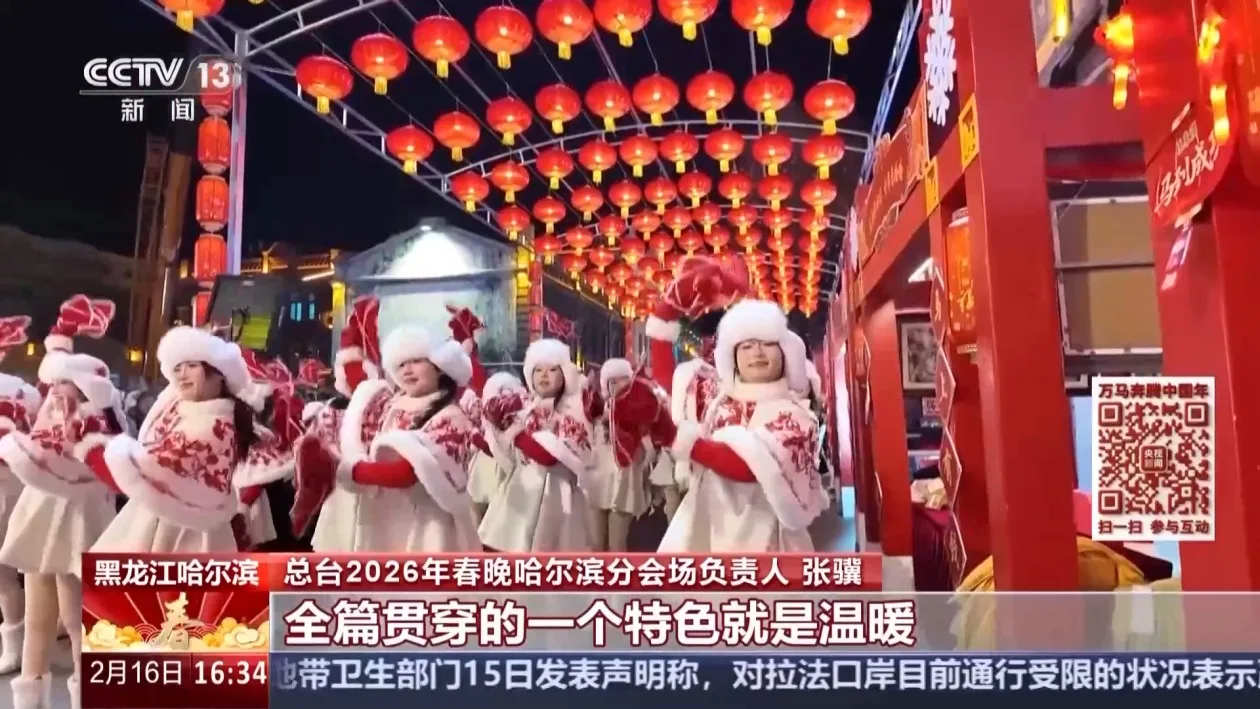 总台2026年春晚哈尔滨分会场负责人 张骥:我觉得整台哈尔滨分会场的节目,可以用六个字来做一个总结。一个就是热情。冰天雪地这种天气下,我们当地人的这种热情、游客的热情。还有一个就是幽默。就是我觉得我们东北人会有一种天生的幽默感,有天生的幽默气质,所以我们整个片子当中会有很多幽默的节目特色的露出。第三个,我觉得全篇贯穿的一个特色就是温暖。我们会传达出这个城市能够带给所有人的一种温暖的情感表达。