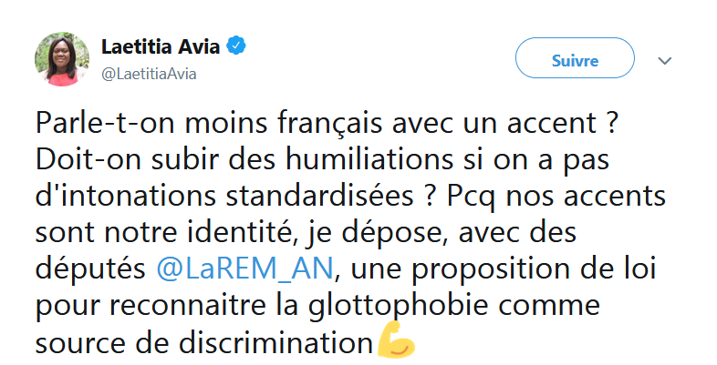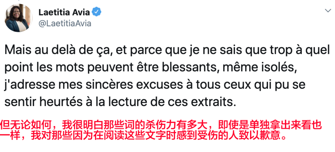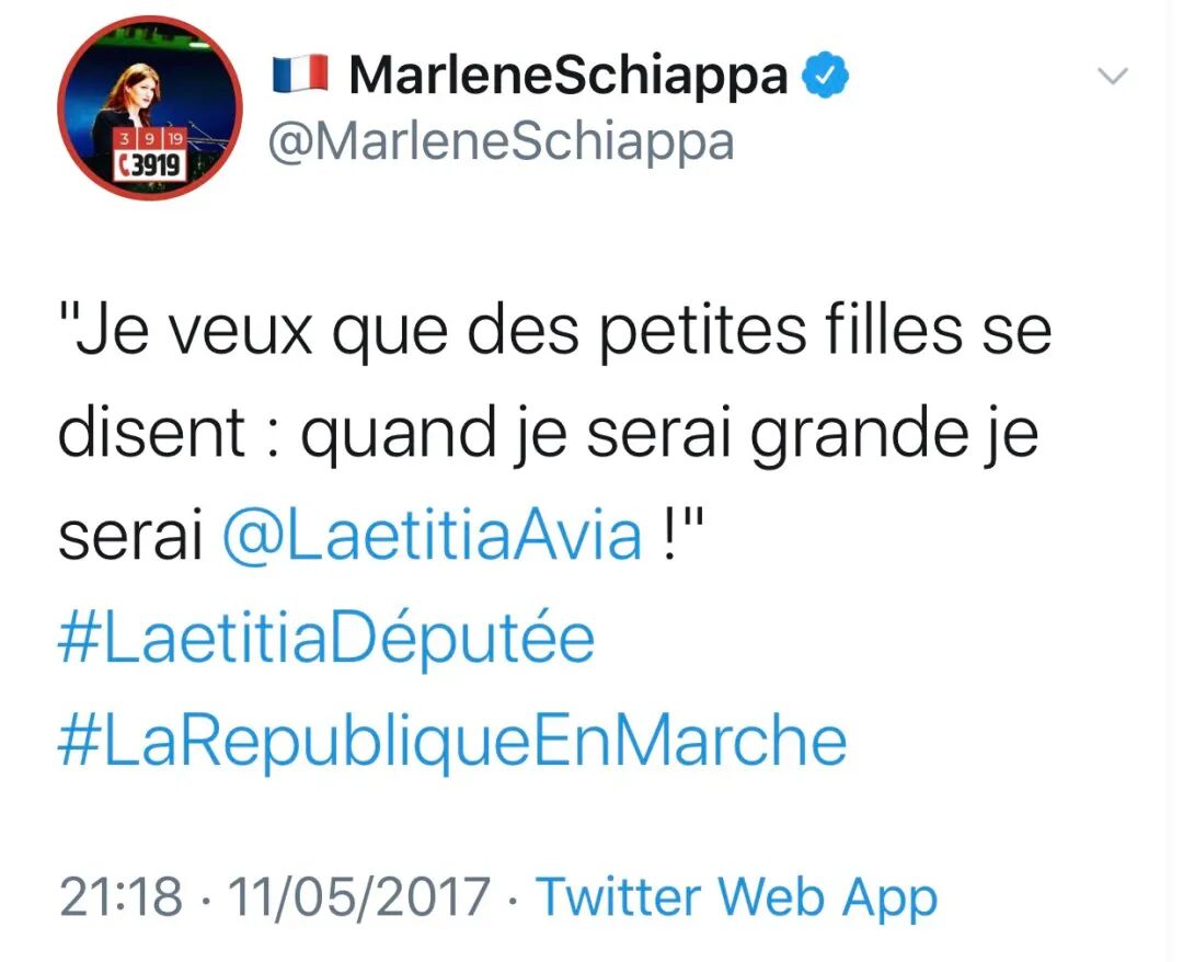 这里的Laetitia Avia其实是个人名,是一位来自法国执政党共和国前进的议员。