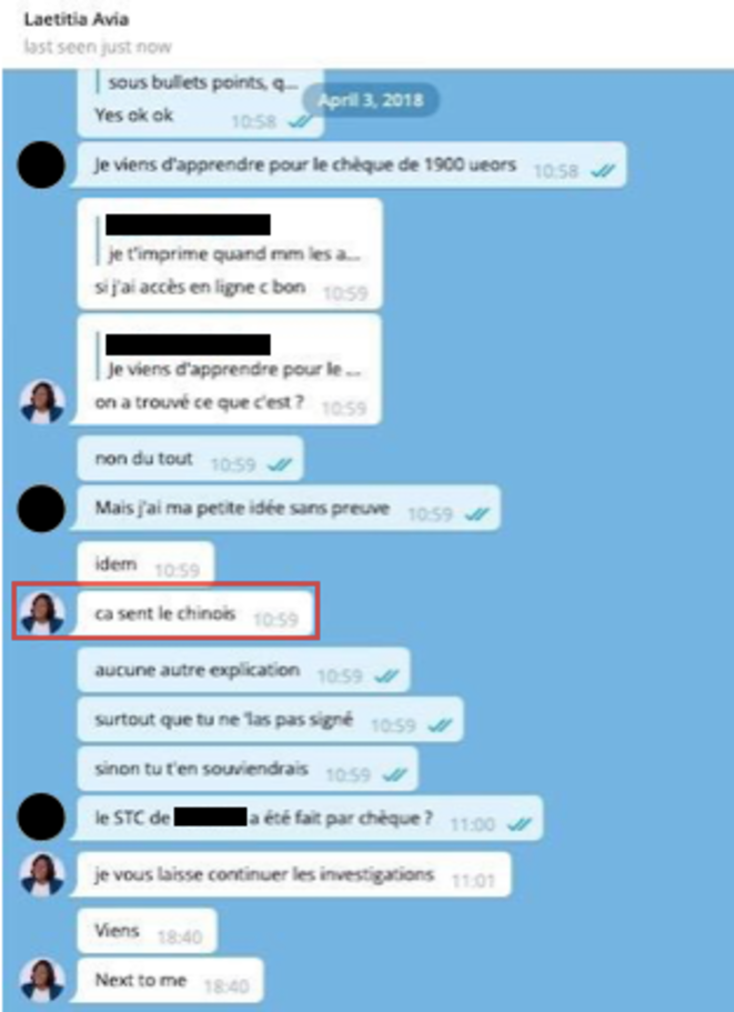 但她在私底下的真实情况到底是怎样的呢?这些助理表示,和他们一起工作的有一个亚裔的助理,Avia明明知道他是法国人,却还总是用「中国人」这个词来称呼他。还有一次,团队内部在兑换一张支票时出了问题,于是Avia试图找出来到底是哪个助理闯的祸。而在和一个助理聊天的过程中,Avia直接表示「感觉像是中国人干的」。