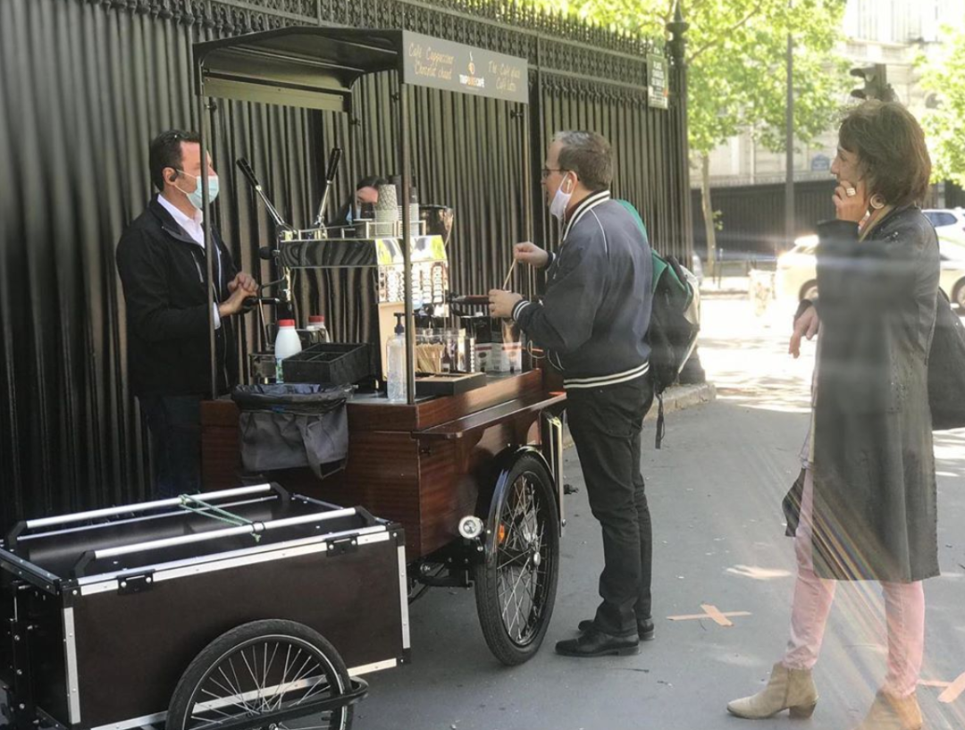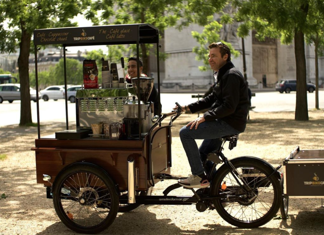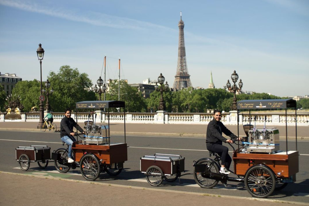 TRIP BIKE CAFÉ咖啡车在整个城市巡游,为巴黎人提供现磨咖啡,浓咖啡、卡布奇诺,玛奇朵咖啡、茶、热巧克力……