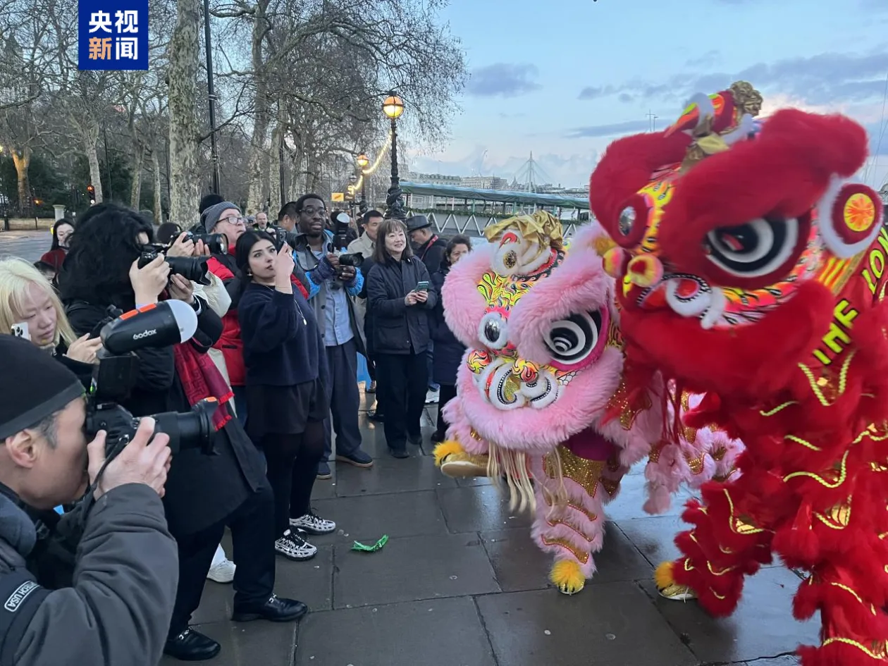 当地时间2月16日,正值中国农历除夕,英国地标建筑伦敦眼再度披上象征着喜庆与兴旺的红色和金色装扮,配合泰晤士河畔的舞狮表演,让伦敦洋溢着浓浓的中国年味。