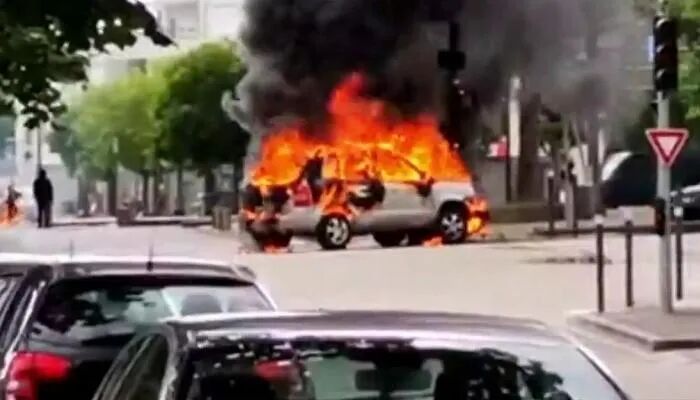但从6月12日开始,一场史无前例的大械斗正在第戎的Les Grésilles区爆发。现在法国人只要一看关于第戎的新闻,看到的都是这种景象:随处可见被焚烧的车辆和垃圾桶。