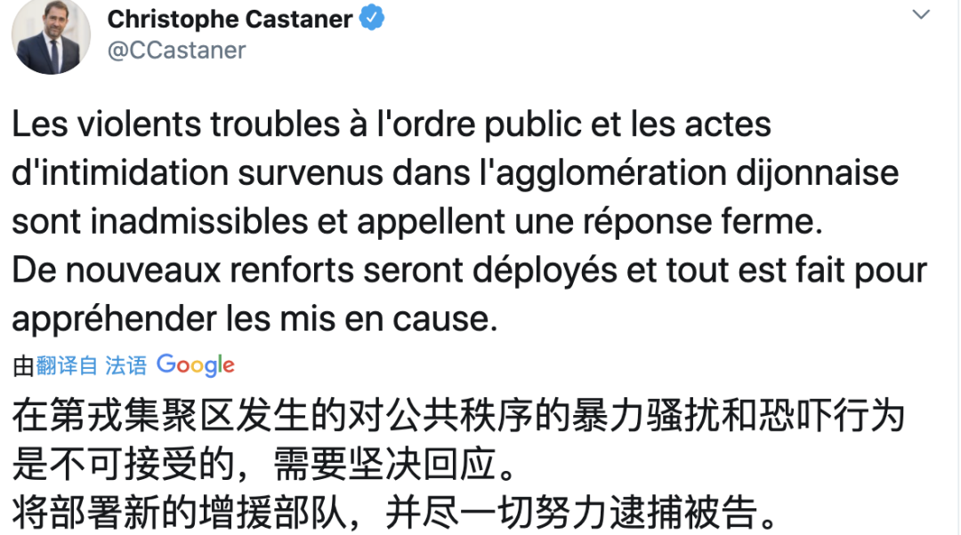 在此之前,很多人都认为这些车臣人的武器只是假的气枪。但如果真的有人拿了真枪在街上晃,第戎当地警方显然是没法控制住这种级别的械斗了。眼看情况已经控制不住了,法国内政部从周日就开始调动60名机动宪兵、40名共和国治安卫队成员以及10名最精锐的黑豹突击队(RAID)成员,前往第戎平息骚乱。