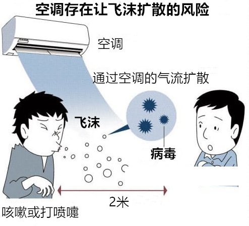 如果有携带病毒的人将病毒传播到了空气中,空调和风扇是可能将这些飞沫送到更远的地方去的。
