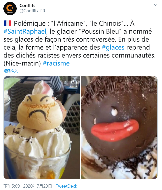 有两款冰淇淋分别叫中国人(Chinois)和非洲人(Africaine)